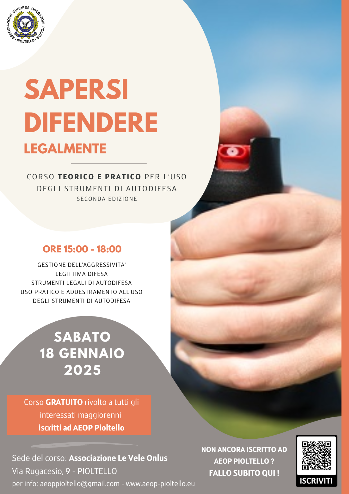 Il corso verterà su tutti gli aspetti teorici e pratici della difesa, informando, formando e addestrando opportunamente i partecipanti tramite una esercitazione pratica nell'uso degli strumenti di autodifesa consentiti dalla normativa in vigore.