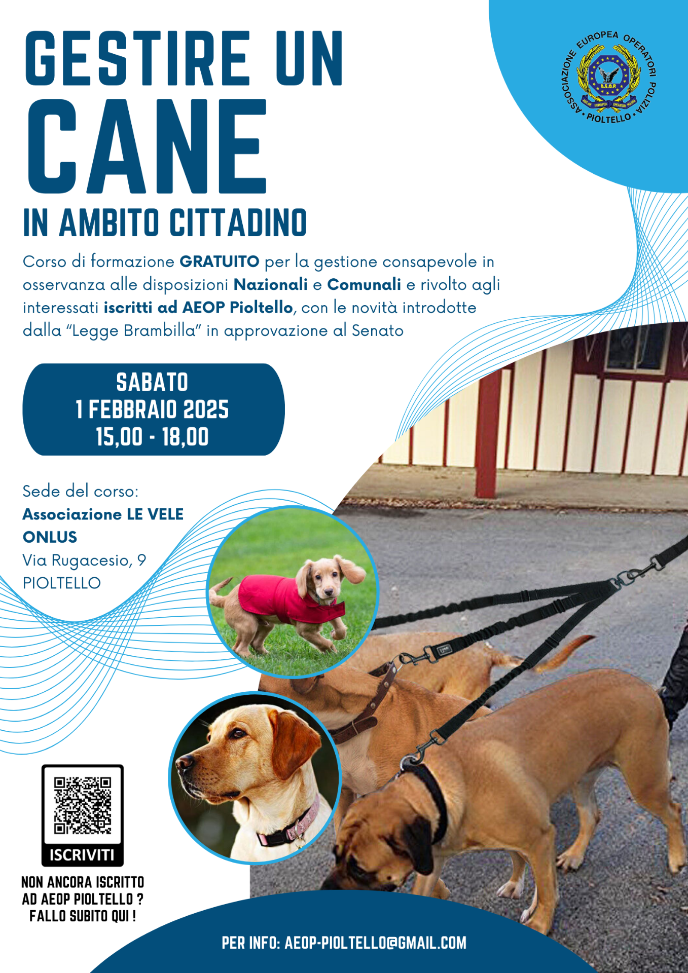Corso di formazione dedicato ai possessori di cani con lo scopo di renderli edotti delle regole nazionali e locali per la corretta gestione dello stesso.