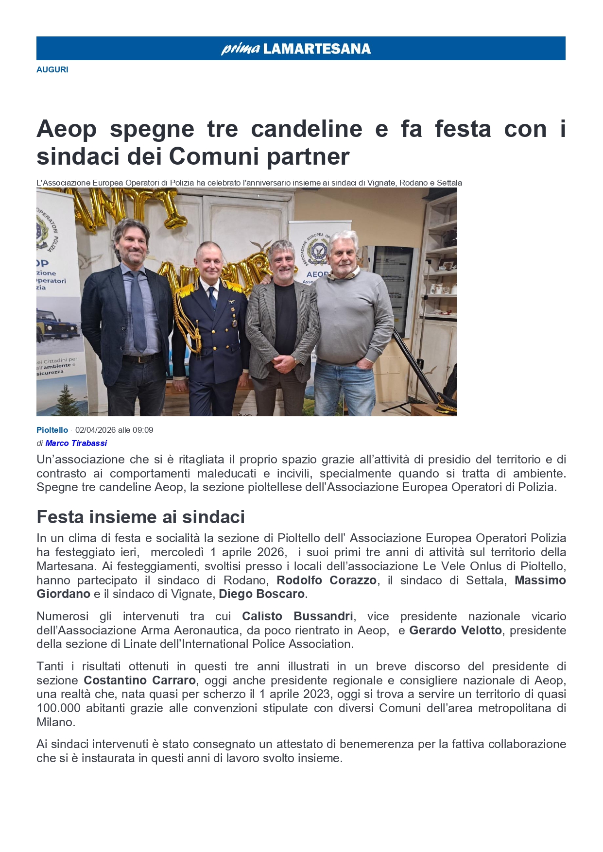 Tel. +39 02 89959777 - Fax +39 02 39290489 - E-mail aeoppioltello@gmail.com - PEC aeoppioltello@pec.it